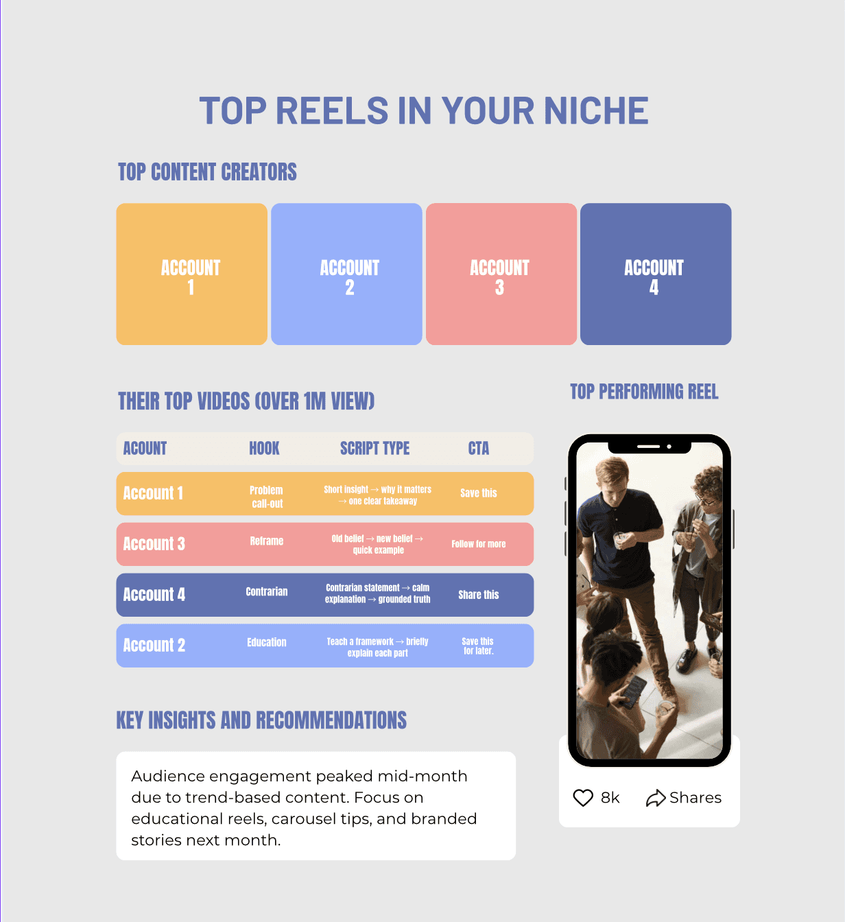 Research : We spend 8 hours studying your niche, competitors, and what’s actually performing.